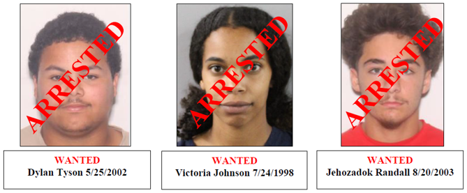 These three suspects have been identified as: 18-year old Jehozadok Randall, 19-year old Dylan Tyson, and 23-year old Victoria Johnson. The Polk County Sheriff's Office has now obtained warrants for the arrests of these three.